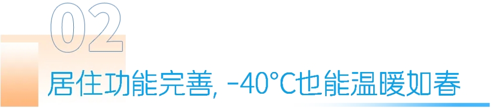 模块化极地舱应用自主研发的高效热控新风循环系统和高保温围护体系,可在南极内陆-40℃的极端低温环境下,维持室内18-22℃的舒适温度。